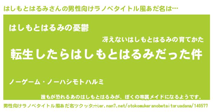 | 肩書あだ名 | 『はしもとはるみ上級大将』 |