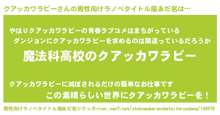 | 女子向けラノベタイトル風あだ名 | 『クアッカワラビーアンティーク』 |