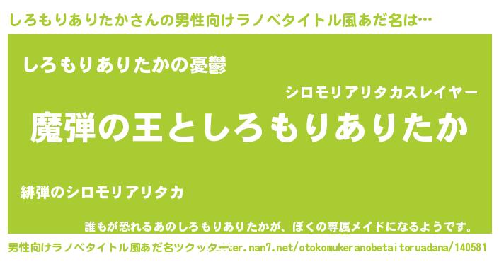 しろもりありたかさんの男性向けラノベタイトル風あだ名をツクッター!