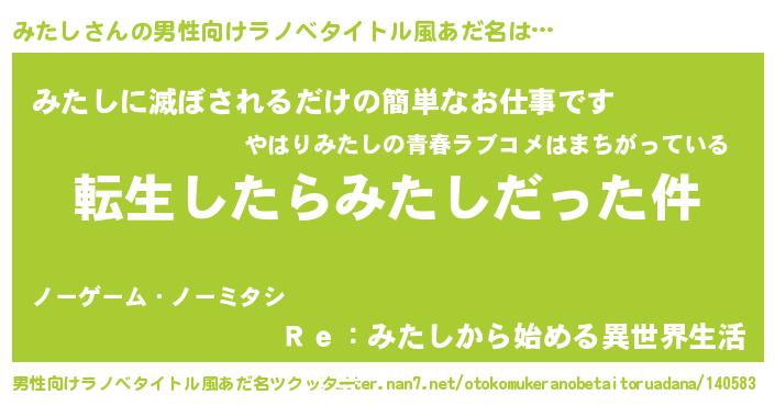 みたしさんの男性向けラノベタイトル風あだ名をツクッター!