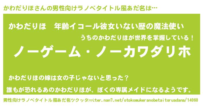 | 女子向けラノベタイトル風あだ名 | 『死神かわだりほの再婚』 |
