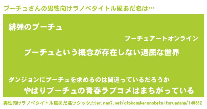 | ヘコむあだ名 | 『ブーチュ(小並感)』『なまこ酢』 |