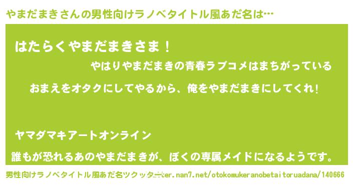 | 女子向けラノベタイトル風あだ名 | 『やまだまき夫妻のなれそめ』 |