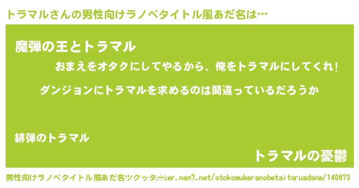 | 胡散臭い通販商品みたいなあだ名 | 『信頼と実績のネックレス…その名も「トラマル」』 |