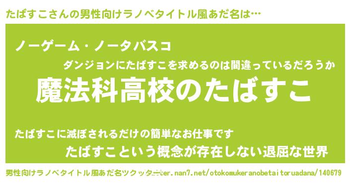 | 意味不明あだ名 | 『自称たばすこ』『永久保存たばすこ』 |