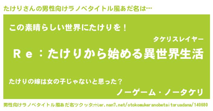 | 女子向けラノベタイトル風あだ名 | 『たけりストレイドッグス』 |