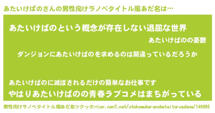 | 女子向けラノベタイトル風あだ名 | 『あたいけばのは平凡を望む』 |
