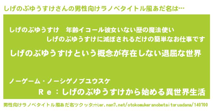 しげのぶゆうすけさんの男性向けラノベタイトル風あだ名をツクッター!