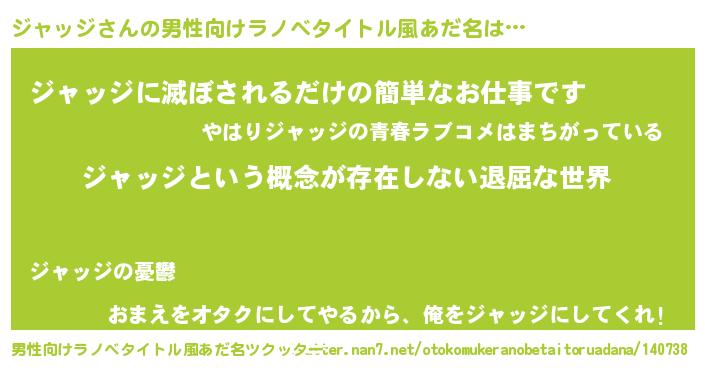 | 胡散臭い通販商品みたいなあだ名 | 『絶対に幸福をもたらす水素水…その名も「ジャッジ」』 |