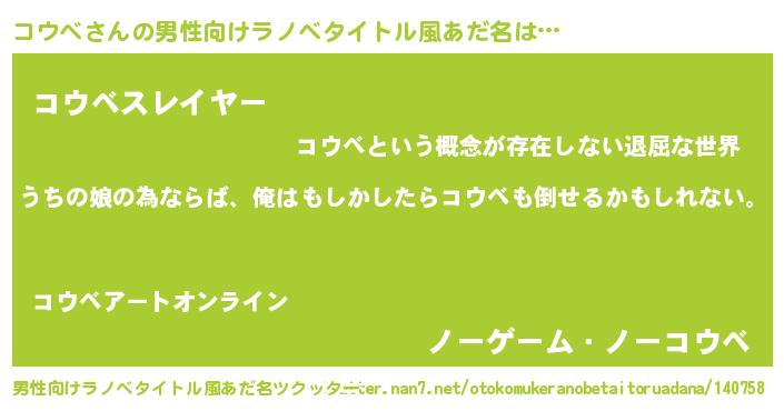 | ヒーロー風カッコイイあだ名 | 『ウルトラコウベマン』『ネオコウベ』 |