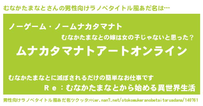 | 胡散臭い通販商品みたいなあだ名 | 『億万長者になれる水晶球…その名も「むなかたまなと」』 |