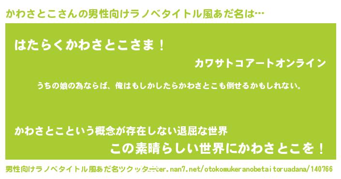 | 胡散臭い通販商品みたいなあだ名 | 『世界が平和になる高級そうな壺…その名も「かわさとこ」』 |