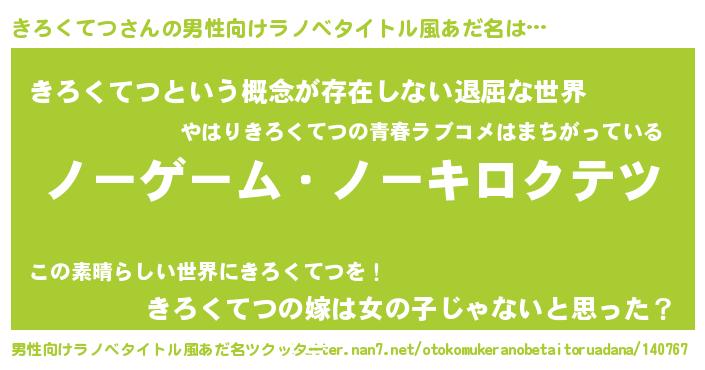 | 女子向けラノベタイトル風あだ名 | 『きろくてつ恋絵巻』 |