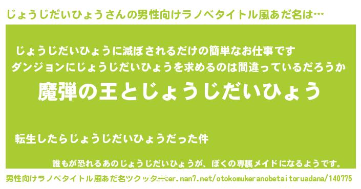 | 女子向けラノベタイトル風あだ名 | 『乙女ゲームの破滅フラグしかない悪役じょうじだいひょうに転生してしまった…』 |