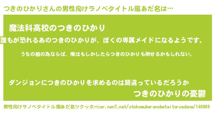 | 女子向けラノベタイトル風あだ名 | 『つきのひかり伯爵の花嫁』 |