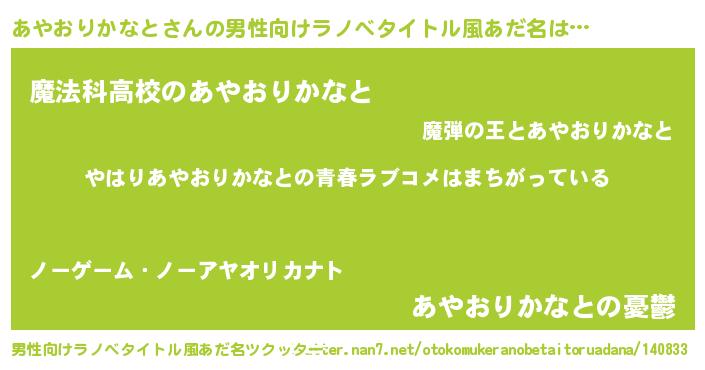 | 女子向けラノベタイトル風あだ名 | 『あやおりかなとの雑貨屋さん』 |