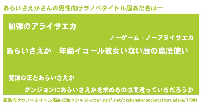| 女子向けラノベタイトル風あだ名 | 『あらいさえかの玉の輿計画!』 |