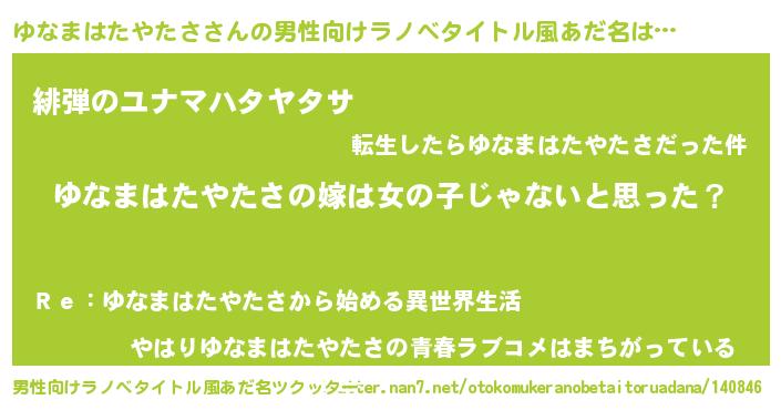 | 女子向けラノベタイトル風あだ名 | 『ゆなまはたやたさ様がみてる』 |