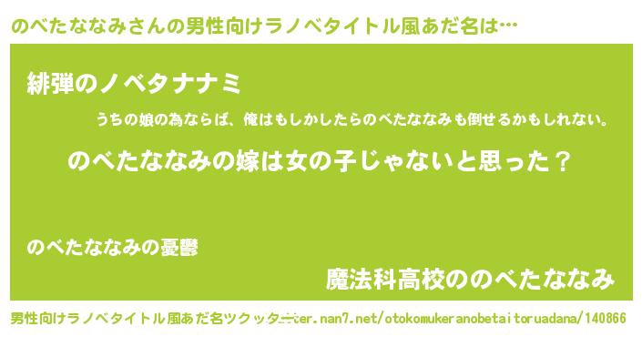 | 胡散臭い通販商品みたいなあだ名 | 『全米が絶賛したペンダント…その名も「のべたななみ」』 |