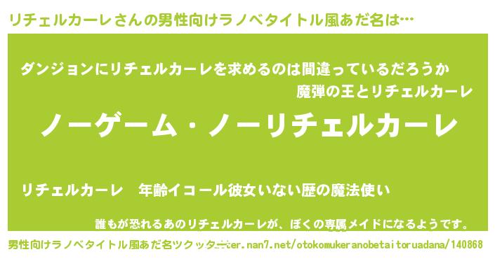 | 女子向けラノベタイトル風あだ名 | 『死神リチェルカーレの再婚』 |
