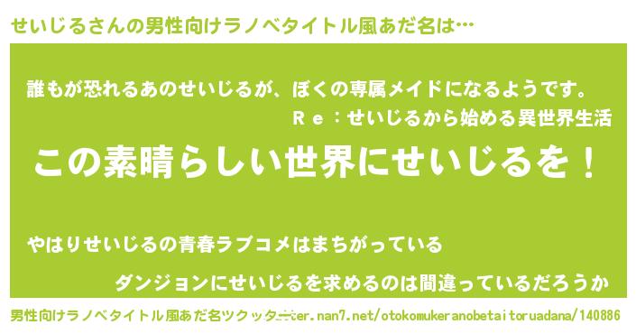 | 胡散臭い通販商品みたいなあだ名 | 『世界中を虜にした100年もののヴィンテージワイン…その名も「せいじる」』 |
