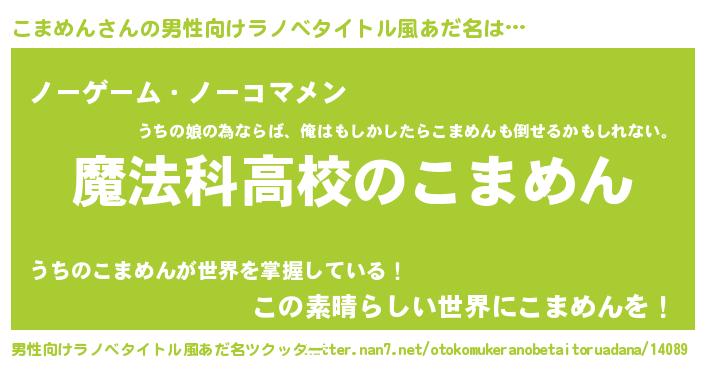 | 女子向けラノベタイトル風あだ名 | 『こまめんなんてお断りですっ。』 |