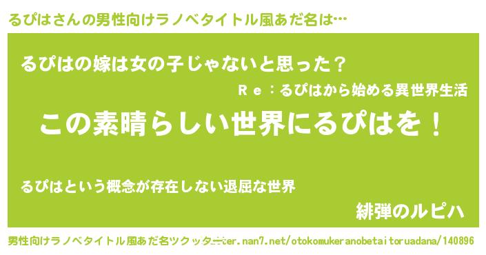 | 意味不明あだ名 | 『住所不定無職るぴは(74歳)』『自称るぴは』 |