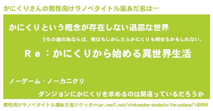 かにくりさんの男性向けラノベタイトル風あだ名をツクッター!