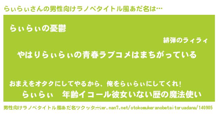 | 女子向けラノベタイトル風あだ名 | 『らぃらぃ伯爵の花嫁』 |