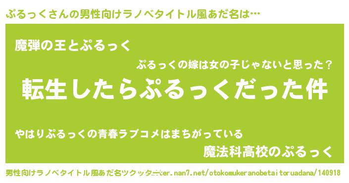 | 女子向けラノベタイトル風あだ名 | 『ぷるっくの玉の輿計画!』 |