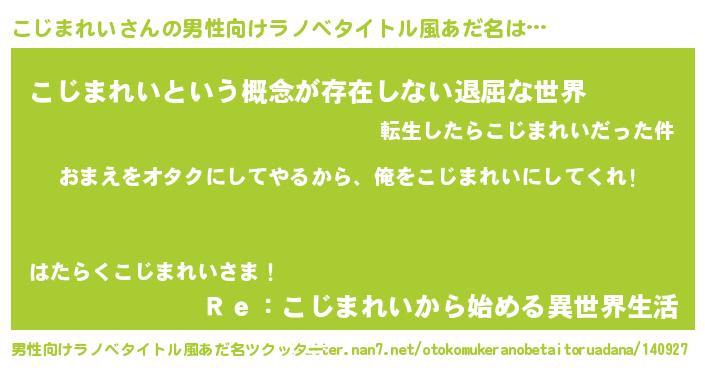 | 女子向けラノベタイトル風あだ名 | 『こじまれい恋絵巻』 |