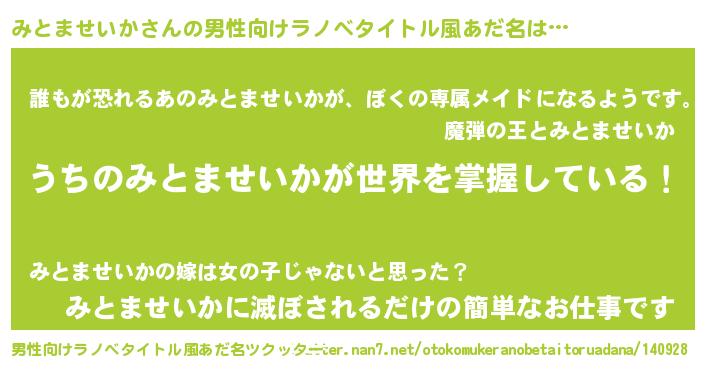 | ヒーロー風カッコイイあだ名 | 『ネオミトマセイカ』『仮面ミトダー』 |
