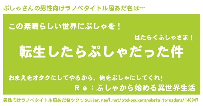 | 女子向けラノベタイトル風あだ名 | 『ぷしゃの玉の輿計画!』『闇のぷしゃ』 |
