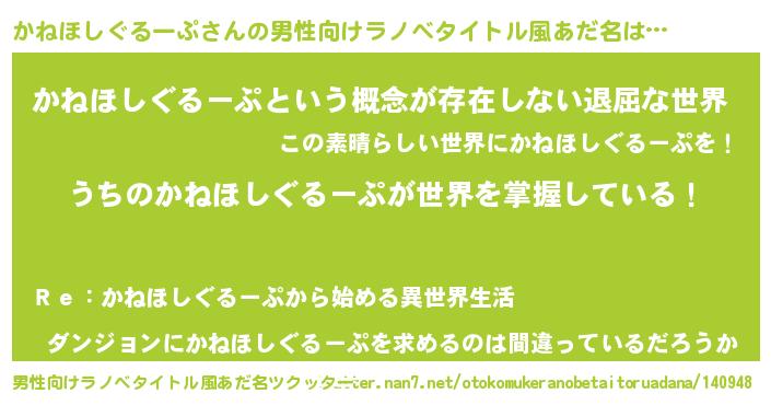 | ヘコむあだ名 | 『かねほしぐるーぷ(笑)』『かねぷりん』 |
