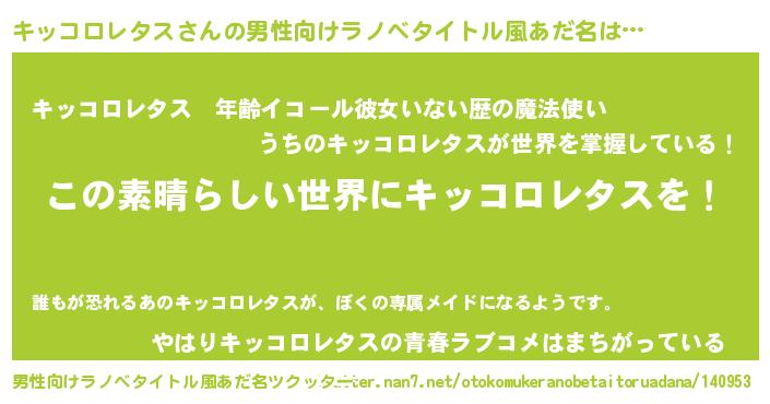 | 意味不明あだ名 | 『住所不定無職キッコロレタス(77歳)』 |