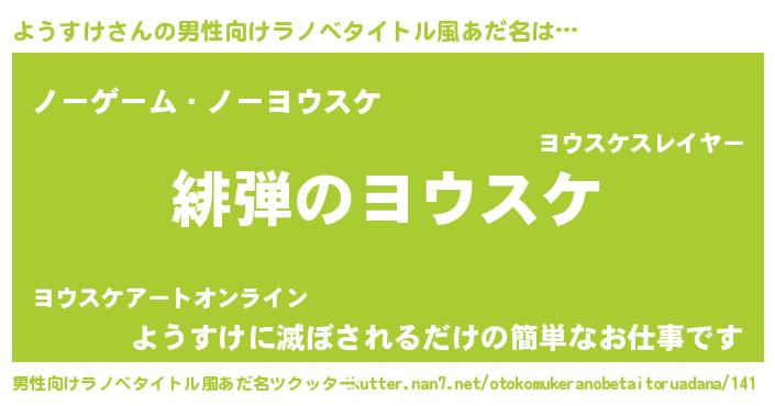 | 欧米人風あだ名 | 『ようすけ・ステッグマイヤー』 |