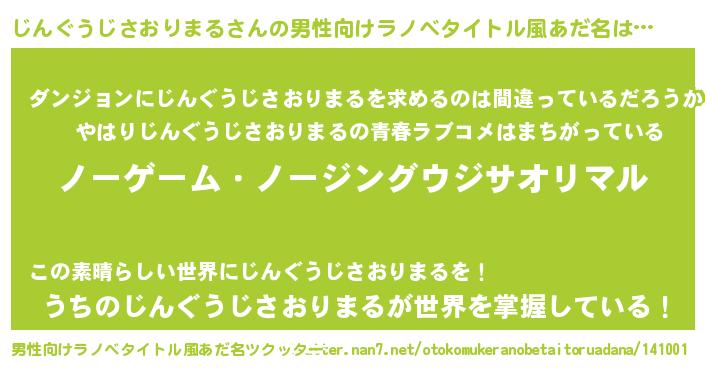 | 女子向けラノベタイトル風あだ名 | 『死神じんぐうじさおりまるの再婚』 |