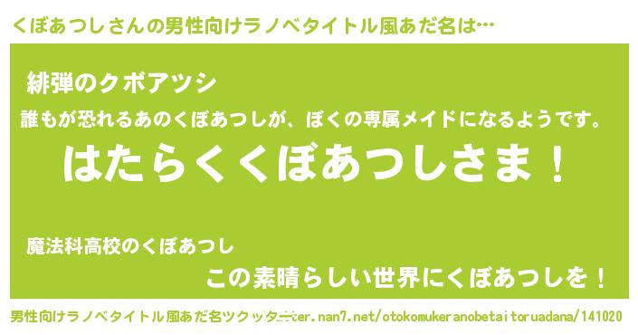| 意味不明あだ名 | 『住所不定無職くぼあつし(91歳)』 |