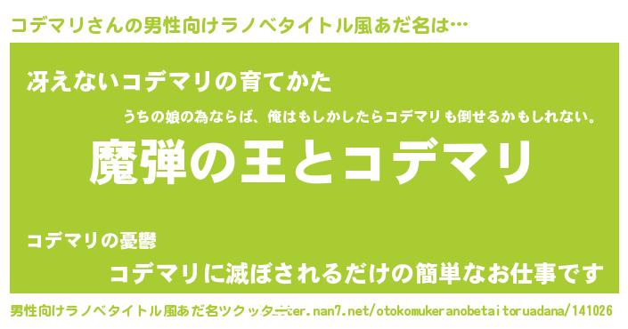 | 意味不明あだ名 | 『住所不定無職コデマリ(89歳)』 |