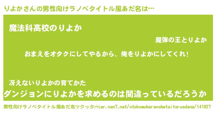 | ヒーロー風カッコイイあだ名 | 『正義の使者りよか』『黄金騎士リヨ』 |