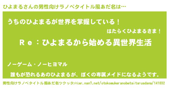 | 女子向けラノベタイトル風あだ名 | 『ひよまるストレイドッグス』 |