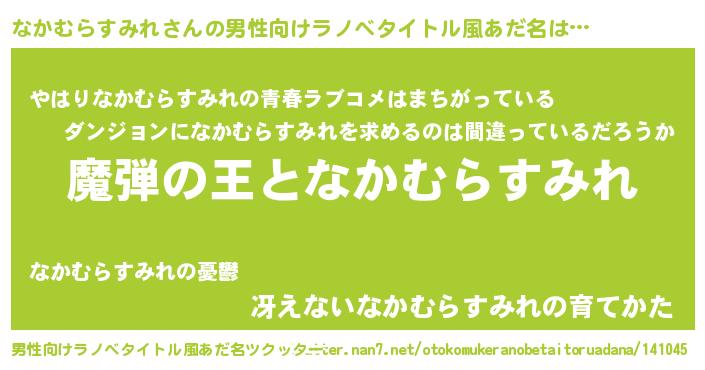 | 女子向けラノベタイトル風あだ名 | 『なかむらすみれが死なない童話 林檎のなかむらすみれの診療簿』 |