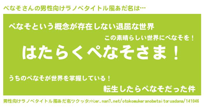 | 胡散臭い通販商品みたいなあだ名 | 『絶対に幸福をもたらす健康食品…その名も「ぺなそ」』 |
