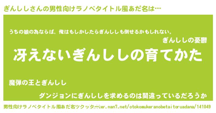 | 胡散臭い通販商品みたいなあだ名 | 『世界が平和になる高級そうな壺…その名も「ぎんしし」』 |