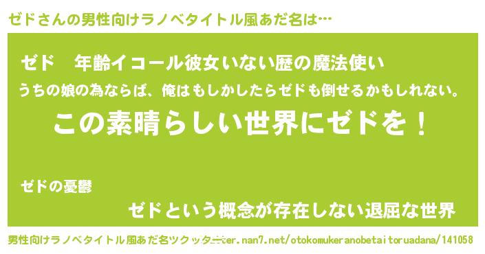 ゼドさんの男性向けラノベタイトル風あだ名をツクッター!