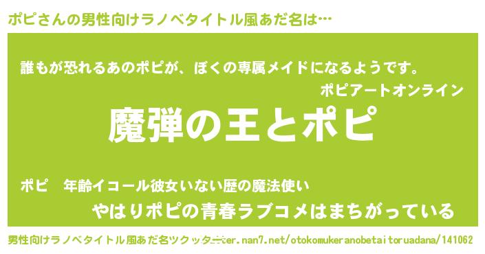 | 意味不明あだ名 | 『住所不定無職ポピ(11歳)』『永久保存ポピ』 |