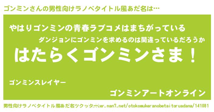| ファンタジー風あだ名 | 『エターナルゴンミンー』『ゴンフェル』 |