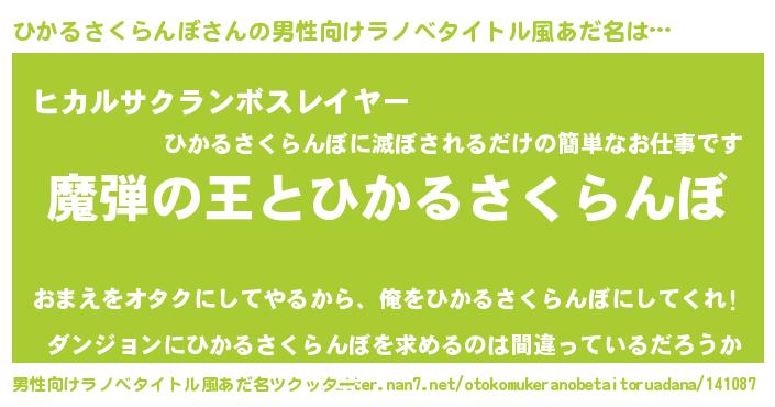 | 意味不明あだ名 | 『住所不定無職ひかるさくらんぼ(62歳)』 |