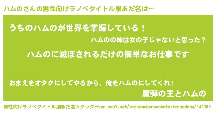 | 女子向けラノベタイトル風あだ名 | 『横柄ハムのと宰相陛下』『ハムの恋絵巻』 |