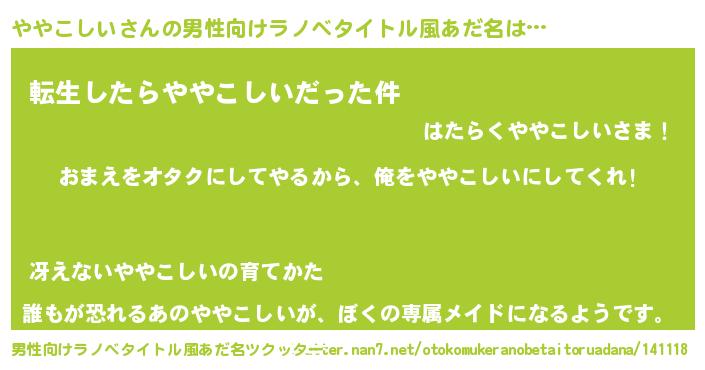 | ヘコむあだ名 | 『ややこしい(笑)』『豆乳』『ややを』 |